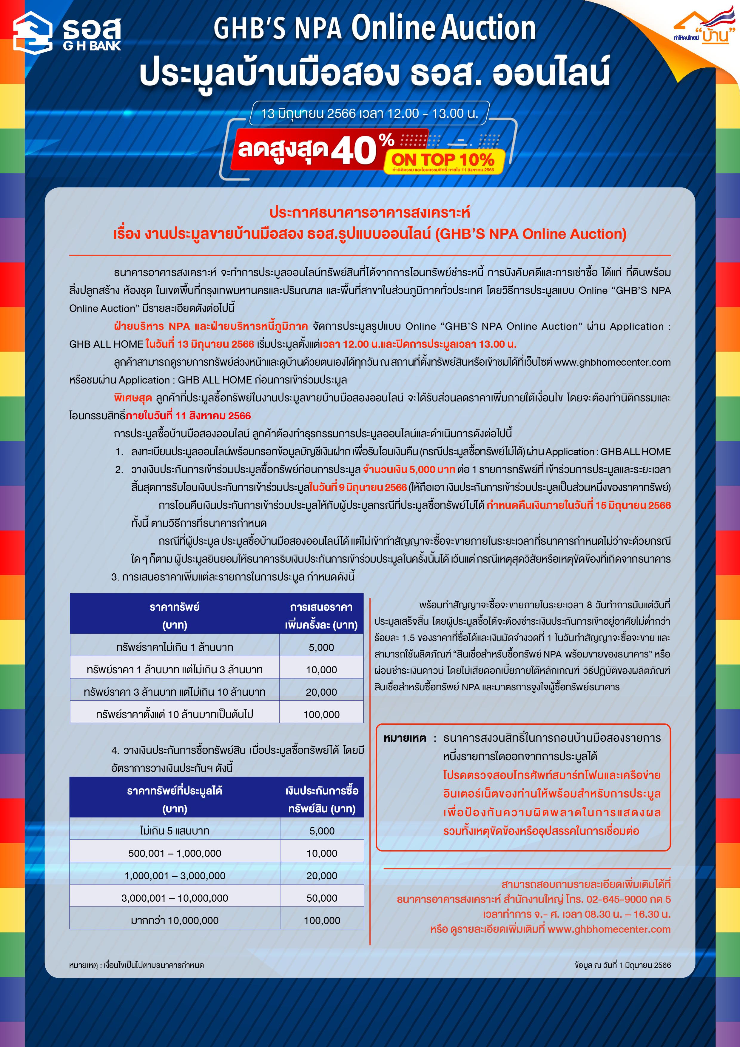 ขายบ้านมือสอง ใน ประเทศไทย ทรัพย์โปรโมชั่นGHB'S NPA Online Auction