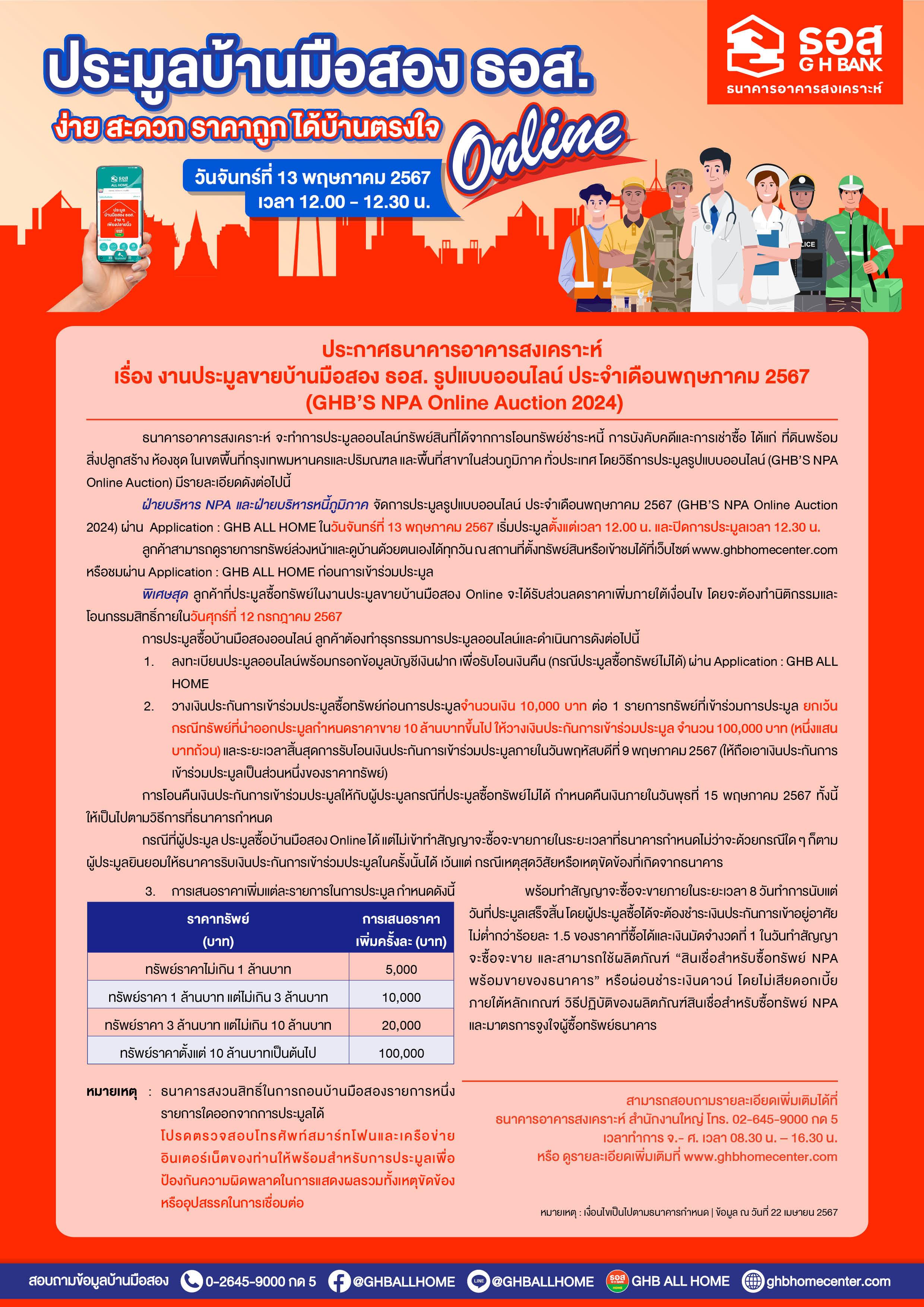 ขายบ้านมือสอง ใน ประเทศไทย ทรัพย์โปรโมชั่นGHB'S NPA Online Auction 2024 13.5